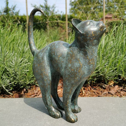 Beautiful Cat Statue With Rounded Back Garden Decor Outdoor Ornament Decoration