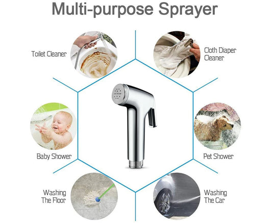 4pcs Bidet Douche Toilet Spray Shattaf Shower Head Hose Sprayer Kit Silver